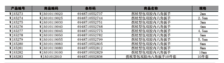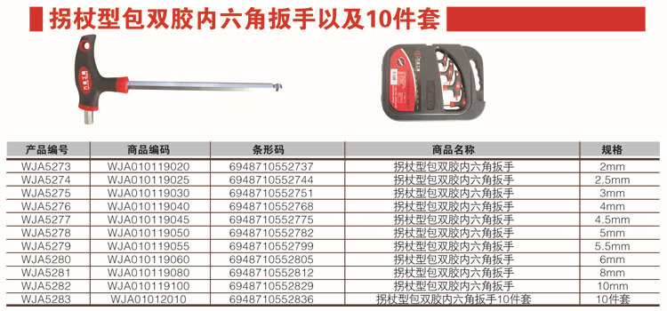 厂家直供 手动工具扳手类 拐杖型包双胶内六角板手以及10件套