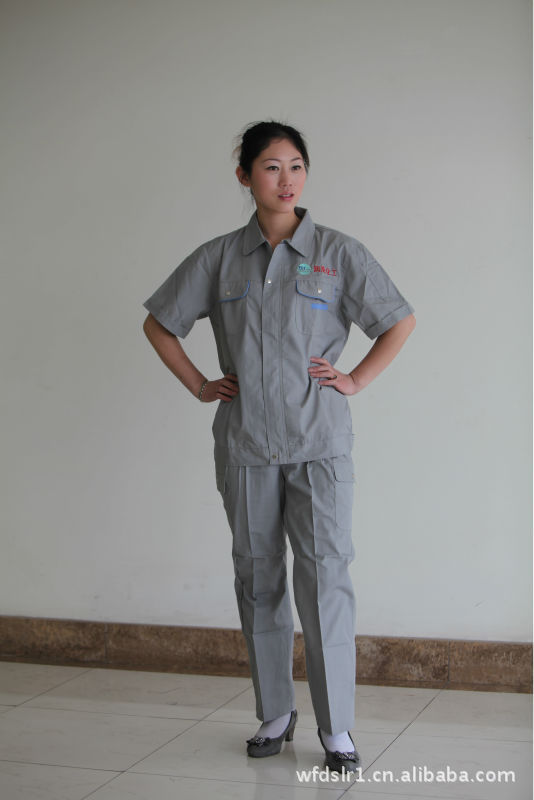 厂家大量供应纯棉细珠帆短袖套装浅灰色工作服