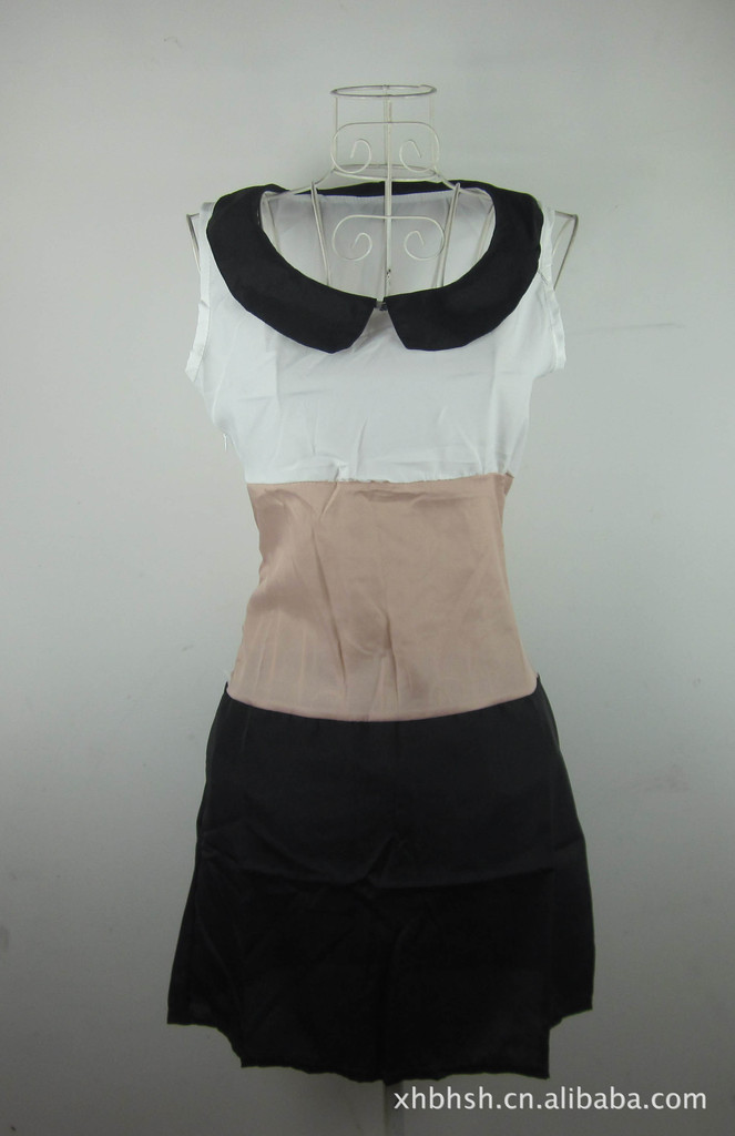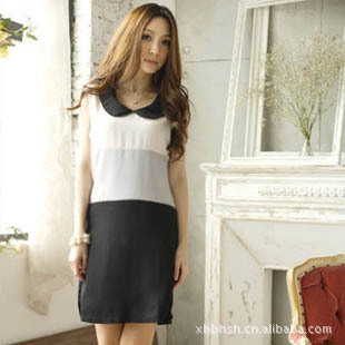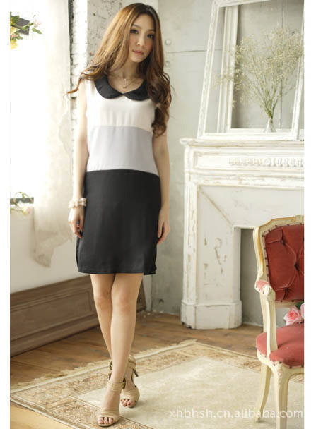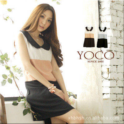 韩版女装2012新款圆领拼色气质洋装修身连衣裙
