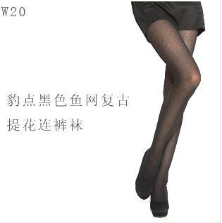 W20豹点黑色鱼网袜连裤袜网眼袜提花袜复古袜镂空丝袜cinderevlla