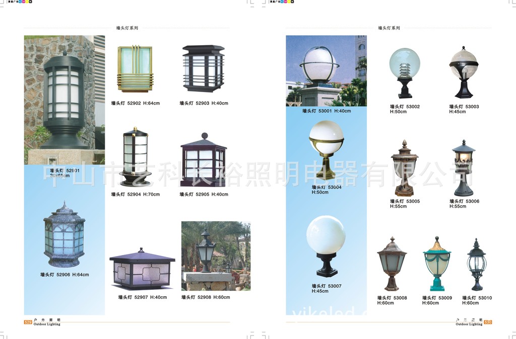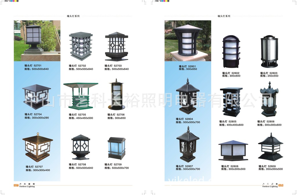 LED圆柱头灯、户外墙头灯、LED灯具、围墙照明灯具