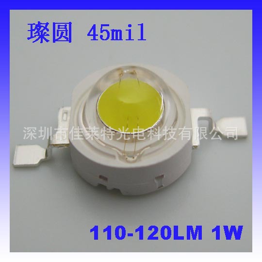 大功率LED灯珠1W,璨圆45mil正白暖白110-120LM,封装光源