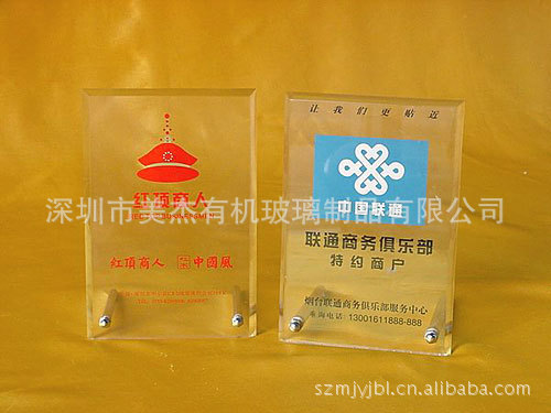 奖牌、授权牌、经销商牌 精制有机玻璃奖杯