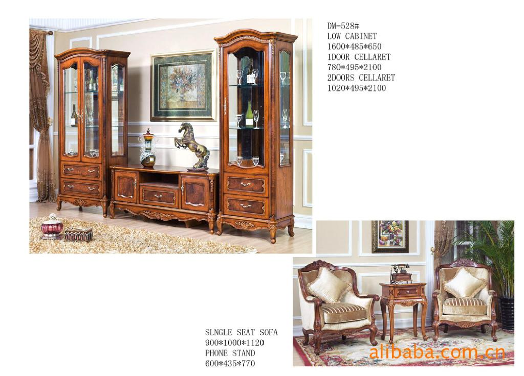 WL-DM-528、简欧风格客厅家具:地柜、单门酒柜、休闲椅、茶几