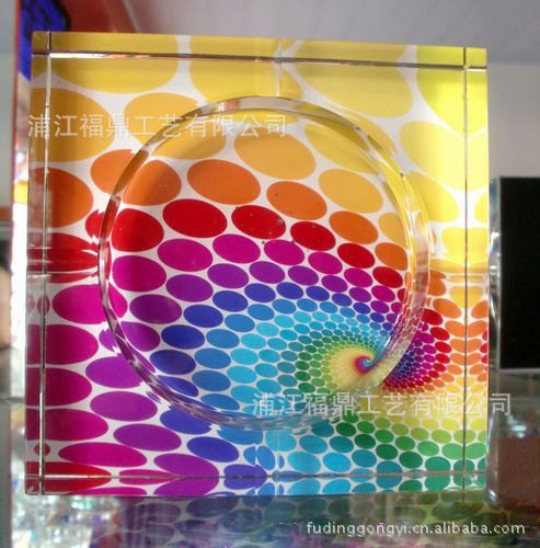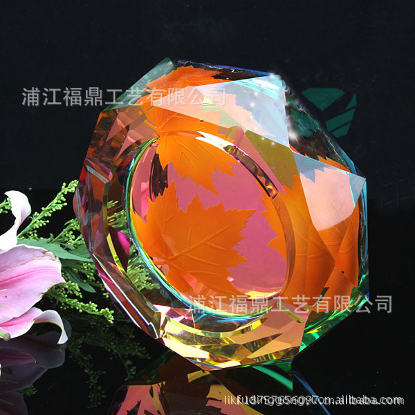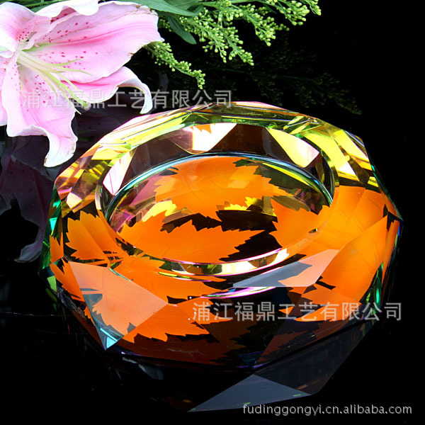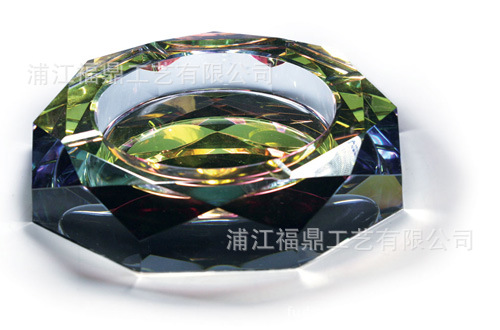 八角水晶烟灰缸 印花 高档通透无气泡 专业定制各类水晶工艺品