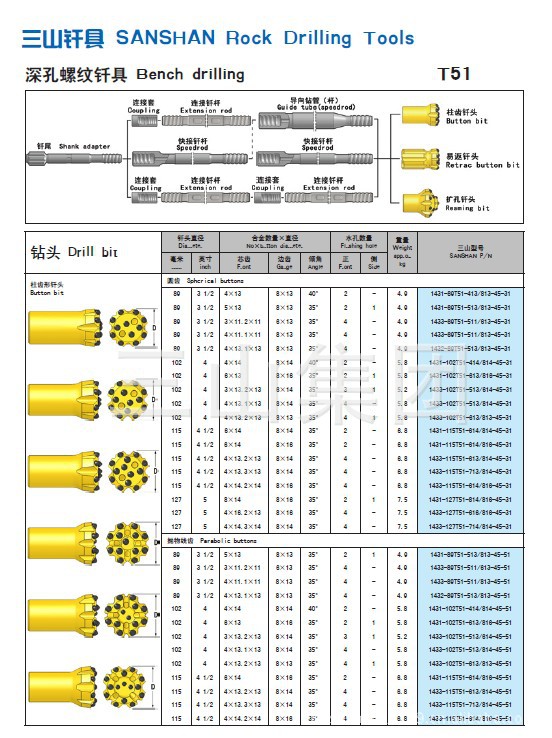 三山螺纹连接钎头 钎杆
