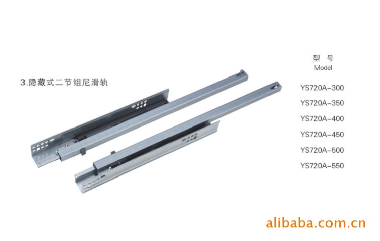 厂家直供 隐藏式三节轨阻尼滑轨插销