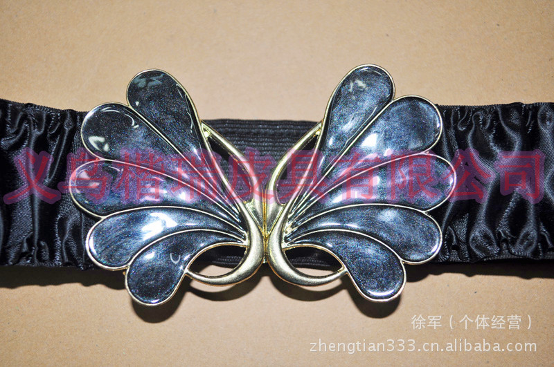 色丁 松紧腰带 合金蝴蝶扣头