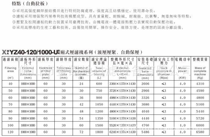 XM/AYZ40~100/1000-UBK型厢式自动压滤机 自动液压 选自动拉板