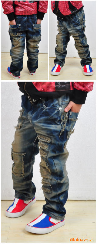 歌歌宝贝2011给力水洗裤 纯棉男童女童牛仔长裤 SK6601