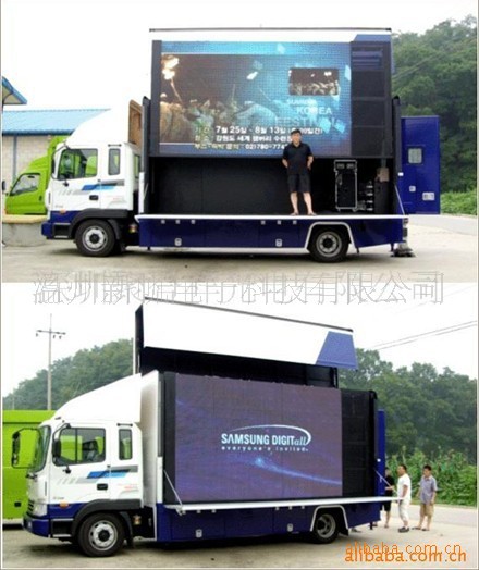 P10室外全彩广告车 屏体升高可选配售货架 背部可做三面翻