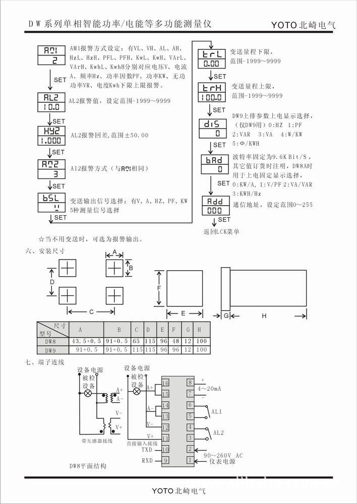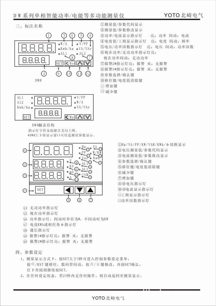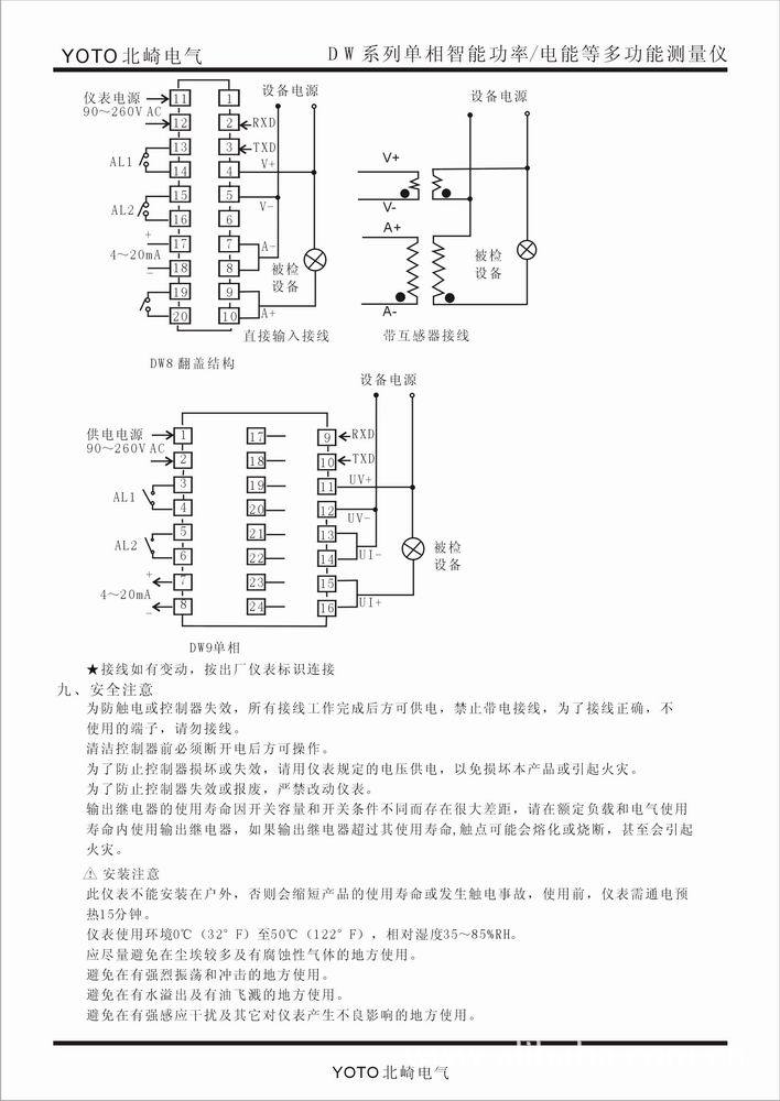 全新YOTO北崎DW系列单相智能功率/电能等多功能测量仪