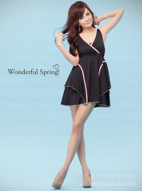 新款2012戴安娜深V交叉撞色背心连衣裙