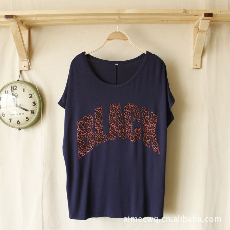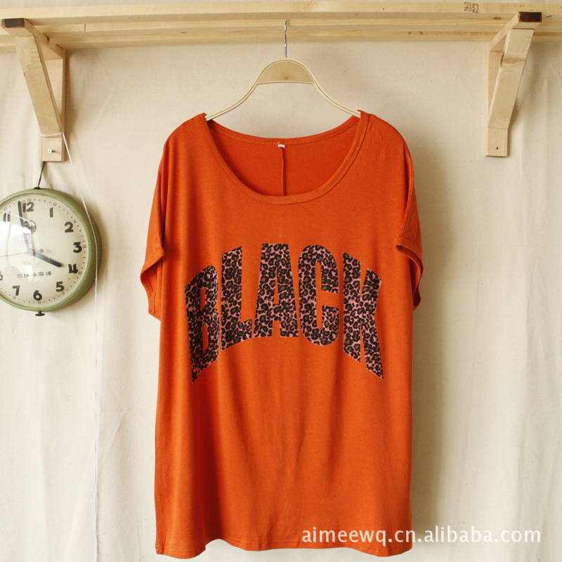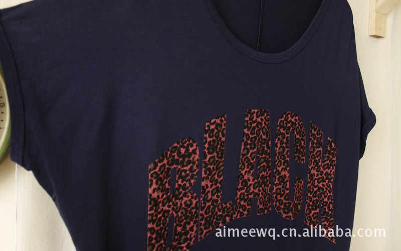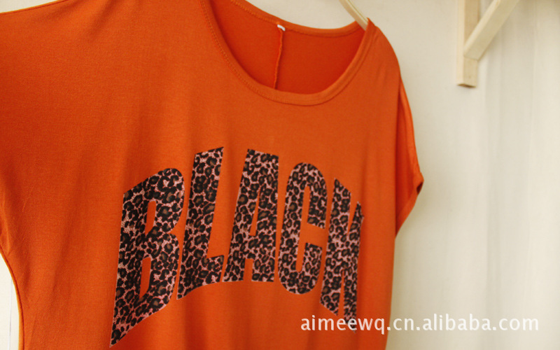 店庆—新款 L041 豹纹字母图案T恤 女装外贸 夏装 女 T恤