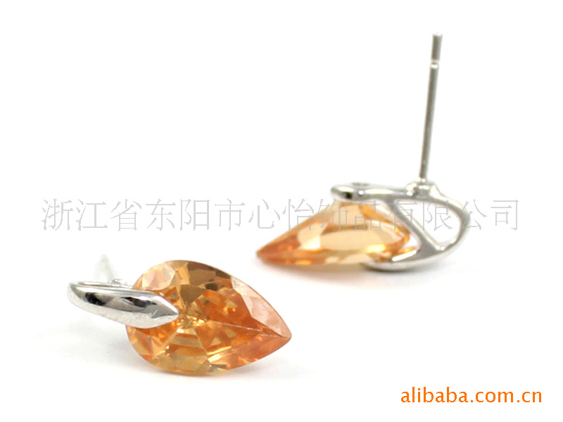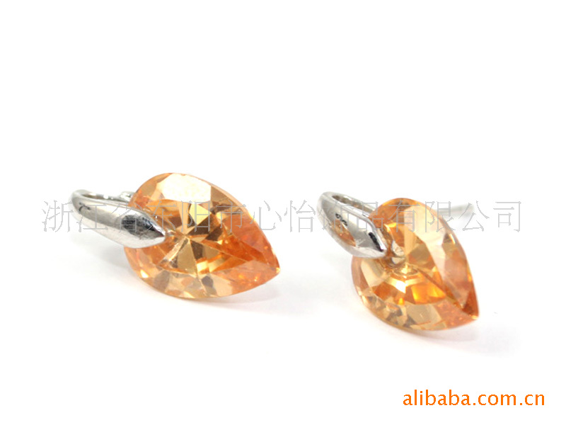 锆石耳钉 新光饰品合作工厂 锆石桃心耳钉