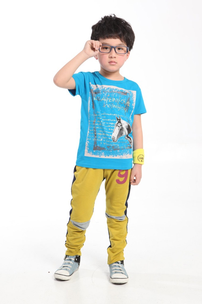 宾果潮童装 男童短袖T恤印花马图案透气休闲韩版2012夏装新款