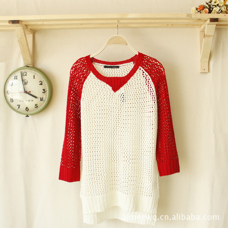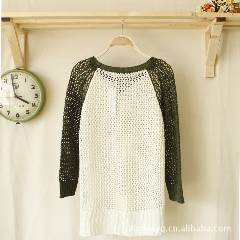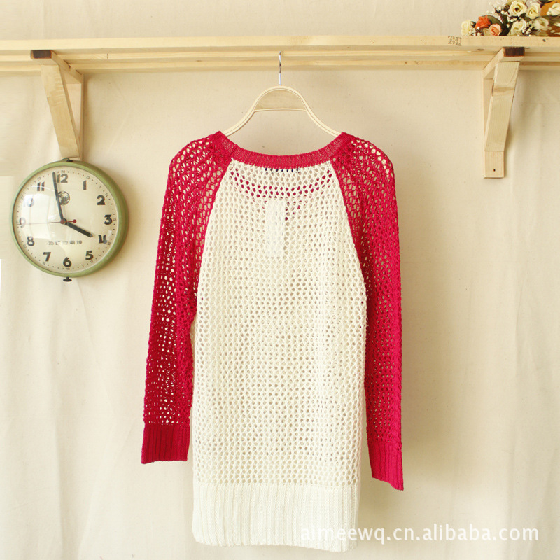 7316 供应原单外贸针织衫 2012女装新款圆领镂空长袖针织衫