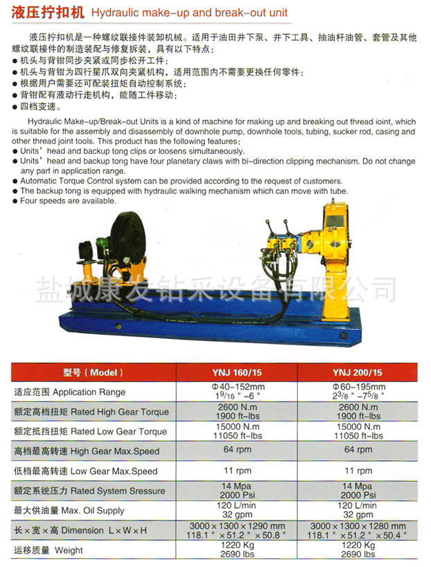 液压拧扣机、YNJ160/15液压拧扣机、YNJ200/15液压拧扣机