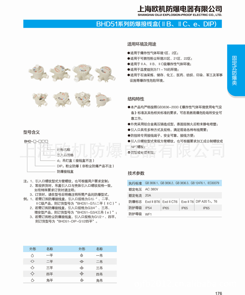 上海欧机防爆电器有限公司供应AH-d系列防爆吊灯盒(IIB、IIC、e)