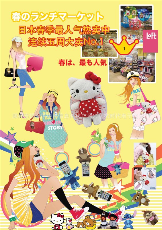 创意定制亚克力女款可爱手机挂饰、卡通动漫手机绳指环可加印LOGO