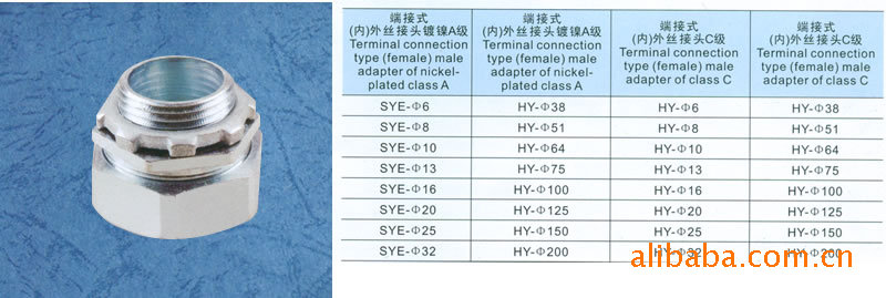专业生产电缆附件端接外丝镀镍接头,金属旋紧件,尼龙固定件,