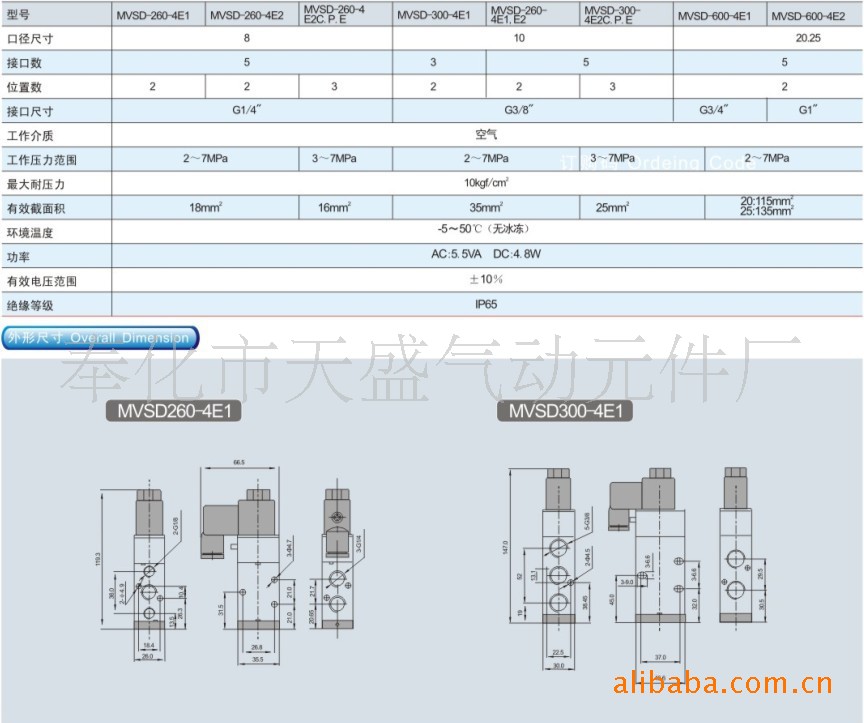 天盛气动厂家直销优质MVSD600系列二位五通电磁阀