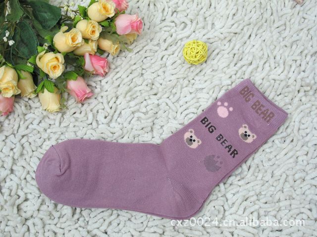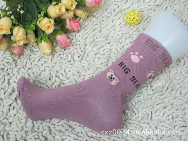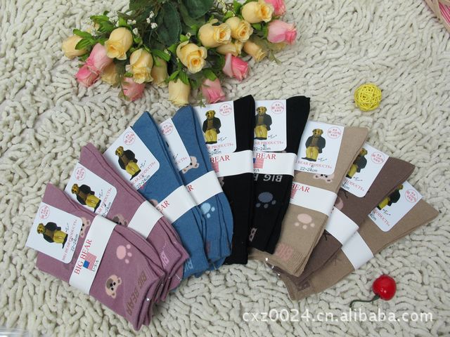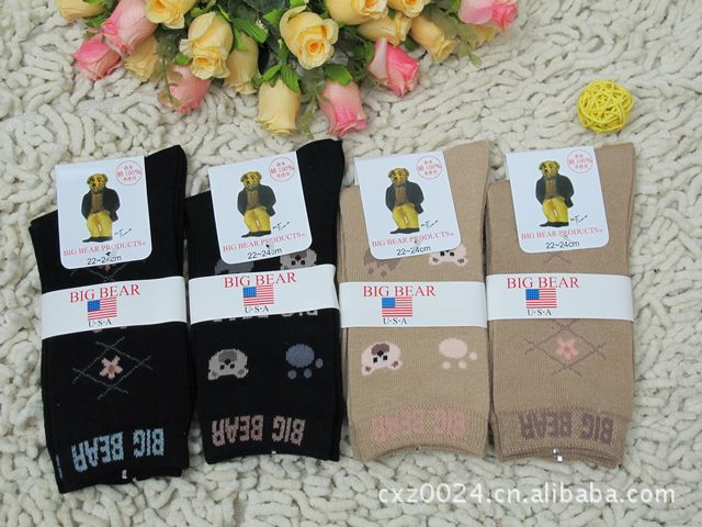 外贸袜子批发 big bear原单女袜 可爱小熊头像 女士休闲袜 成人袜
