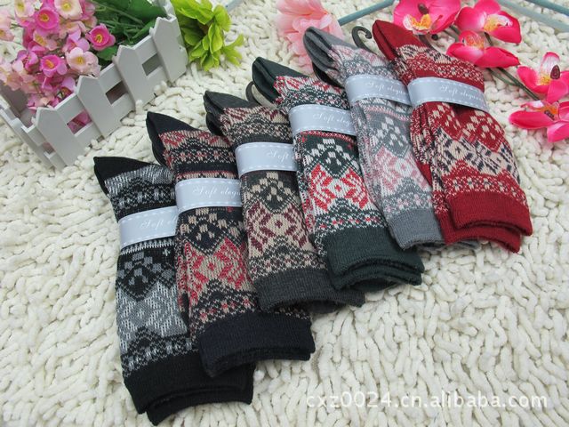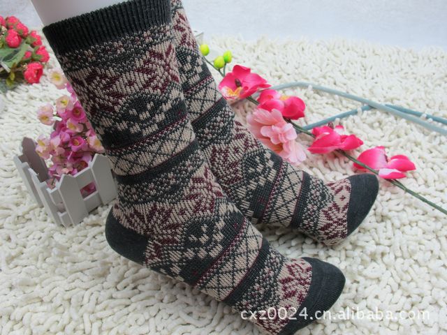 外贸袜子批发 日单女袜 成人袜 时尚八角花图案 复古款 热销