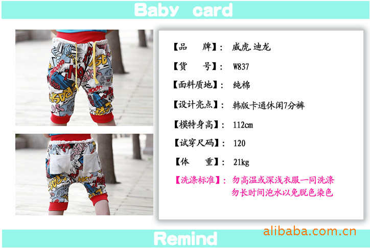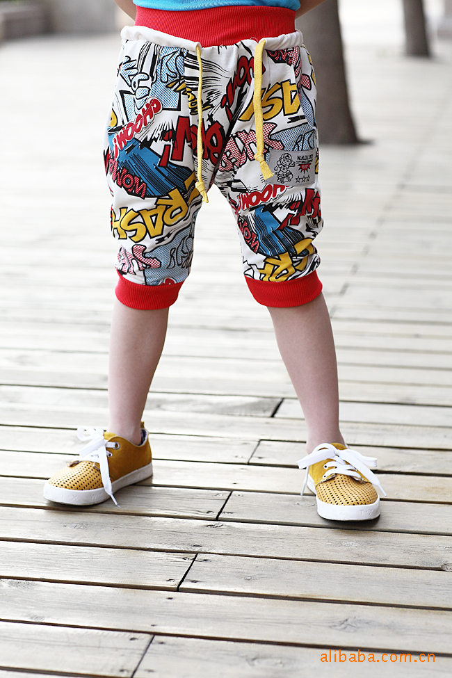 正品儿童垮裤 夏季韩版男童全棉印花松紧带7分裤批发 B2011-01