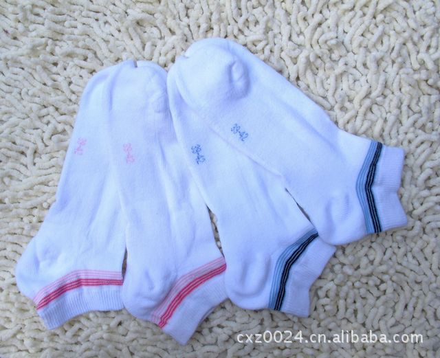 外贸库存袜子 女士船袜 白色 吸汗透气 运动款
