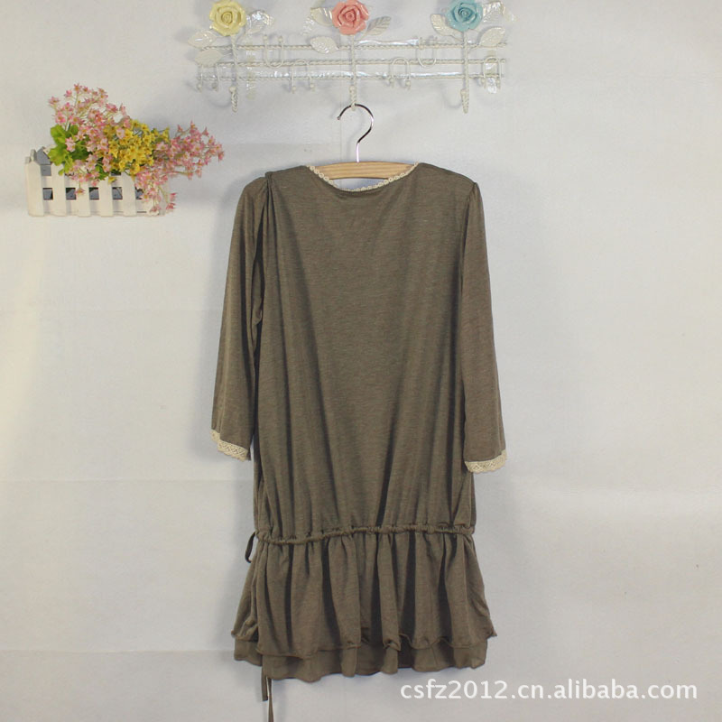 日式原单棉布雪纺褶皱裙深灰浅灰两色收腰绳显瘦可爱热销