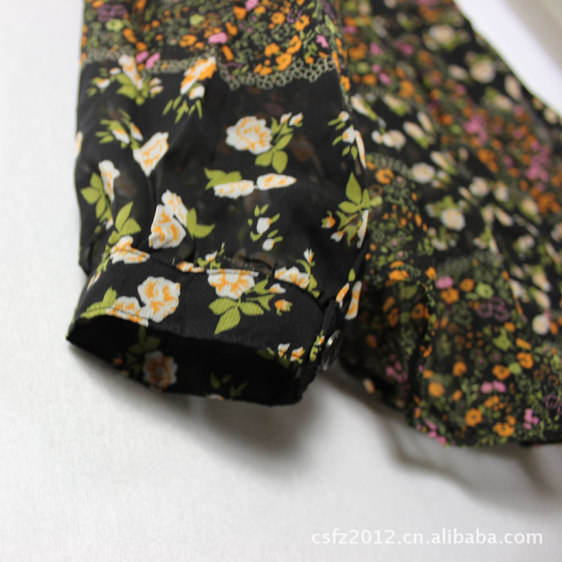 绣花长袖收袖休闲蕾丝衬衫黑绿两款