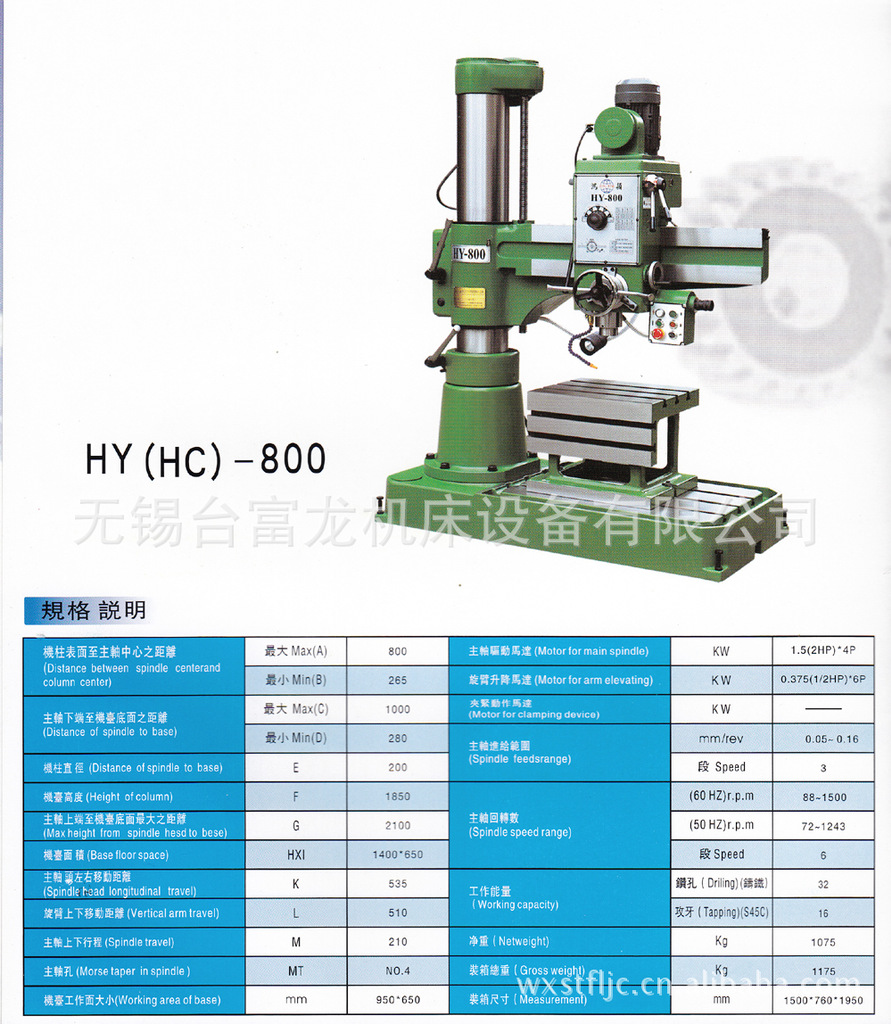 台富龙商家HY(HC)-800 优质供应 旋臂钻床 品质一流