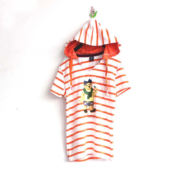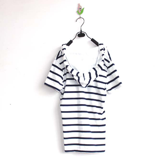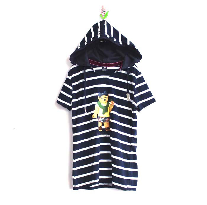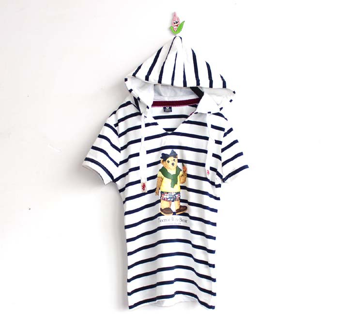 外贸女装批发 专柜小熊正品女式全棉条横带帽T恤