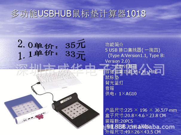 USB HUB计算器 多功能USB计算器 超薄鼠标垫计算器