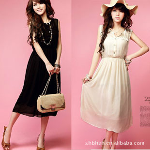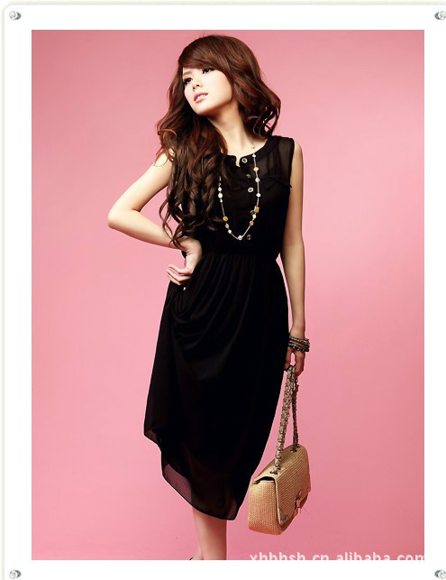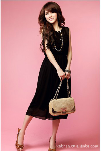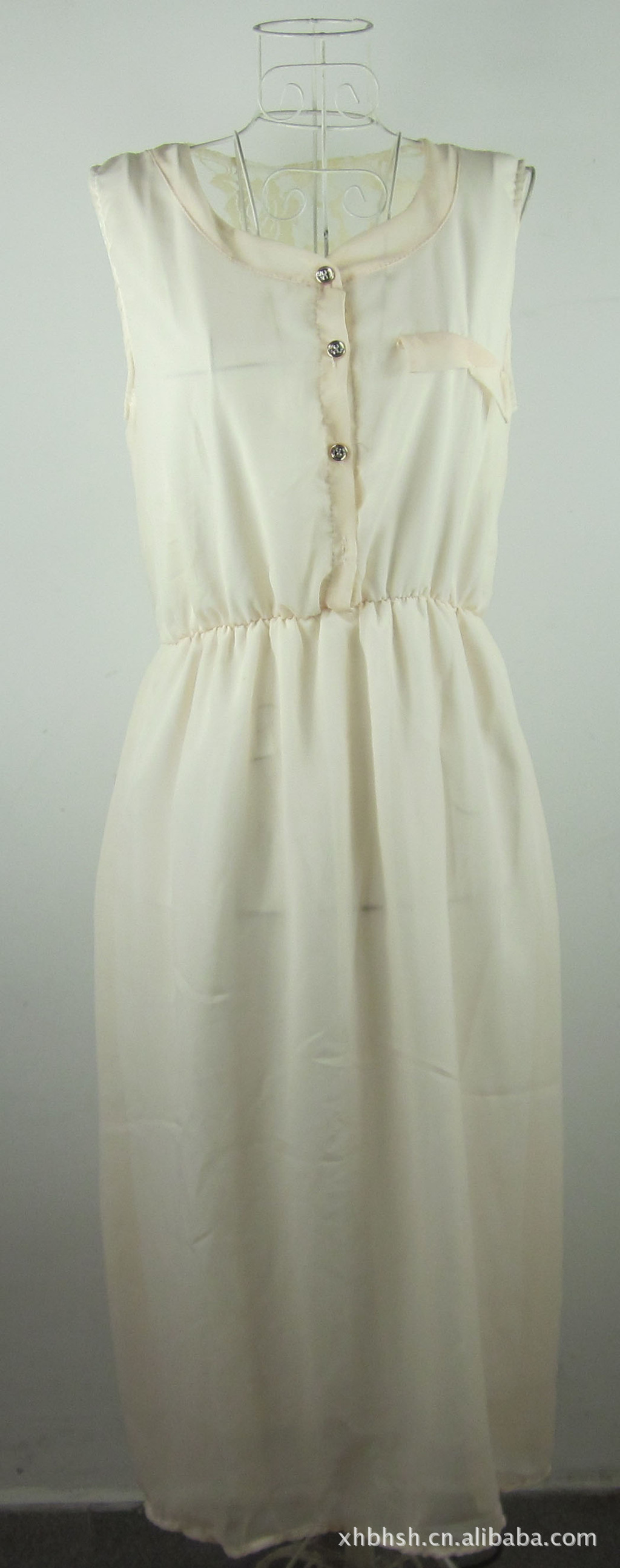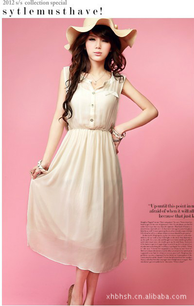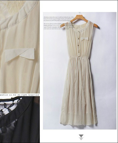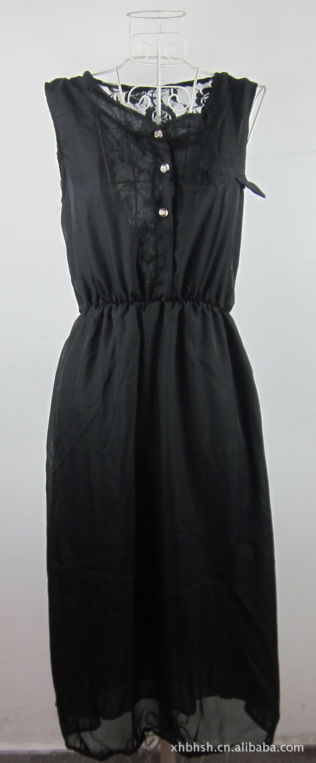 韩版2012夏装新款后背蕾丝花边假口袋气质长洋装雪纺连衣长裙