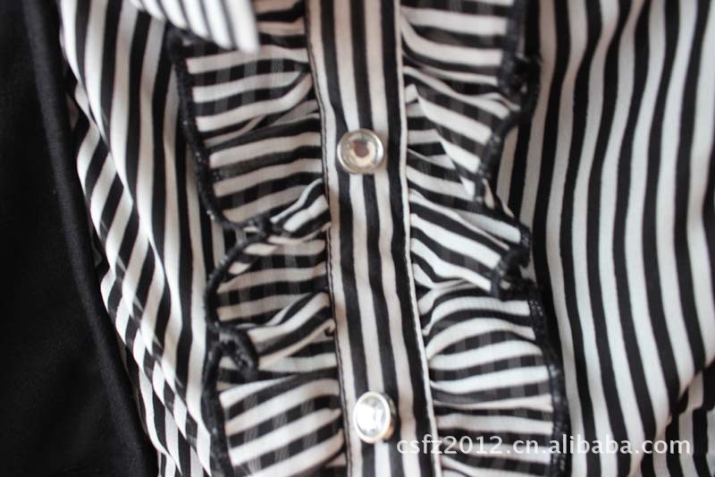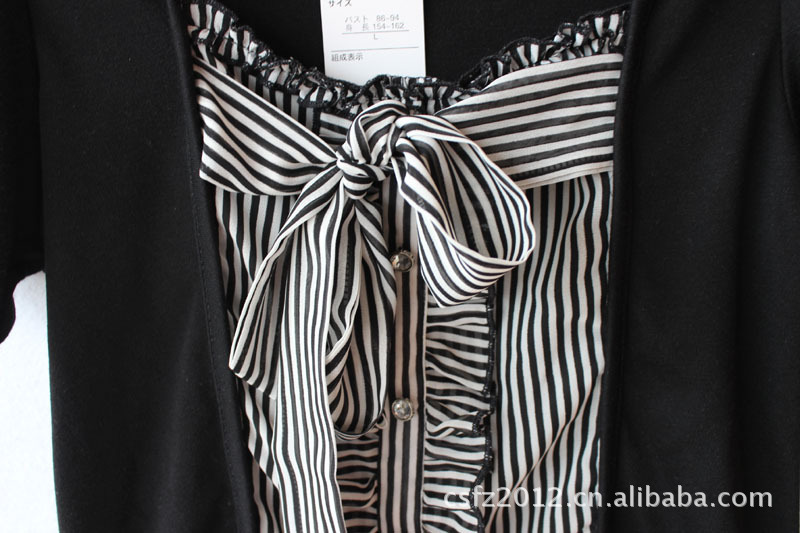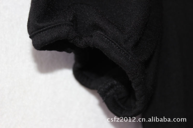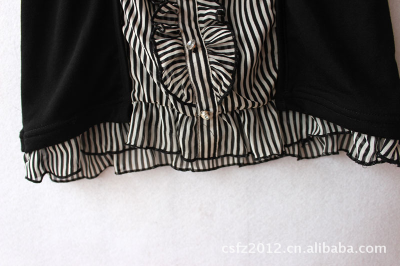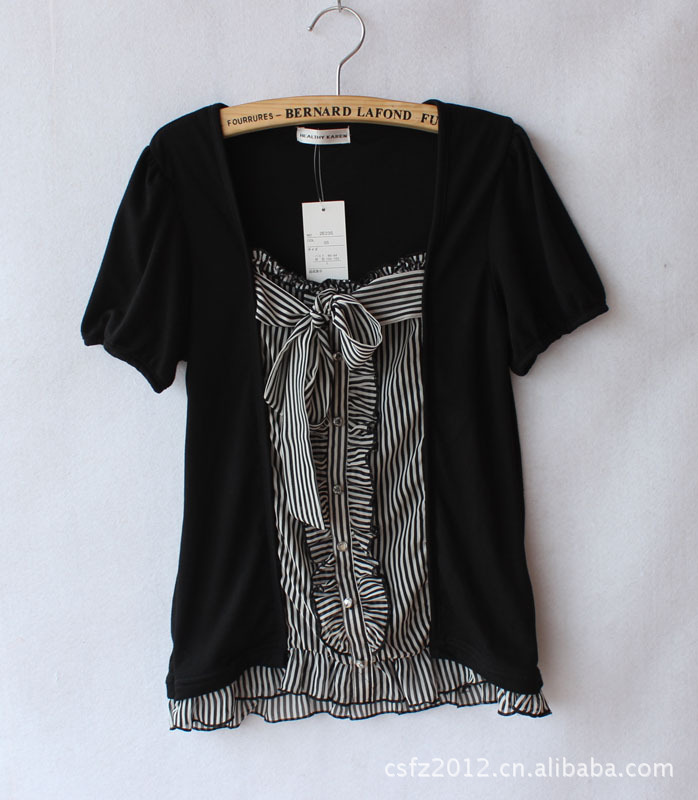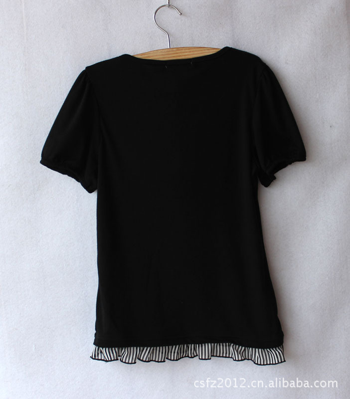 日本原单黑雪纺木耳边松紧短袖棉T恤