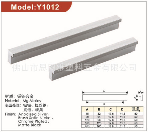 厂家大量供应五金拉手:镁铝合金拉手,橱柜拉手