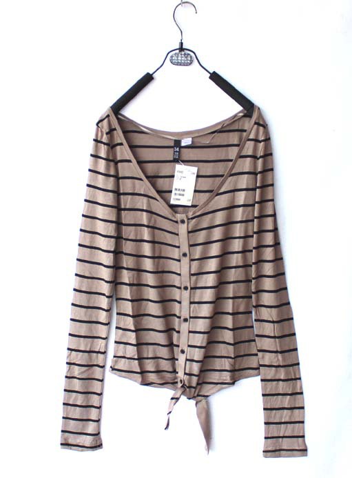 外贸原单女装批发 女式日单日系条横针织衫 开衫