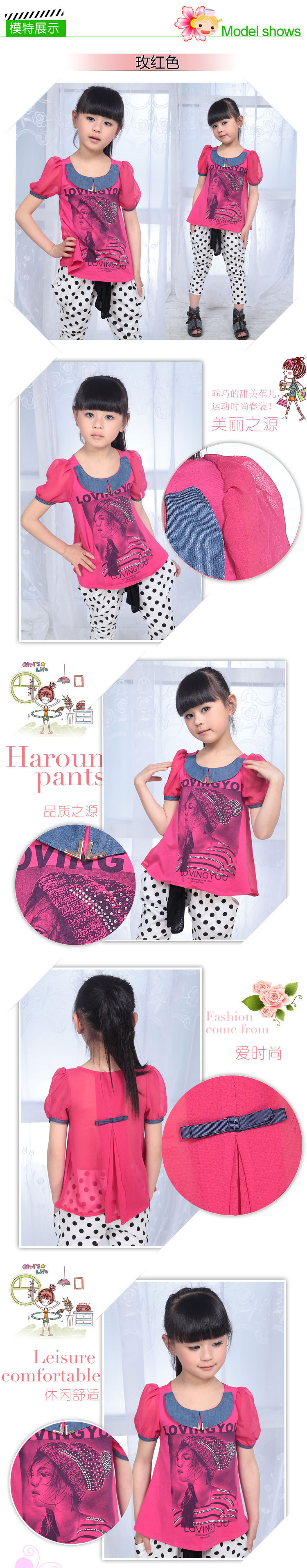 1220#1221#童装女童公主衫雪纺衫 印花中童短袖 厂家直销 童T恤