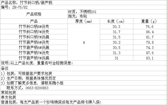 厨之福ZH-75/82无磁4.0mm竹节斜口柄/竹节葫芦柄6/7cm汤壳/漏