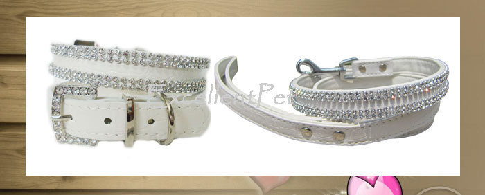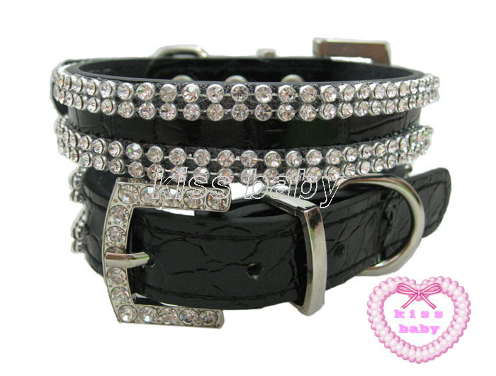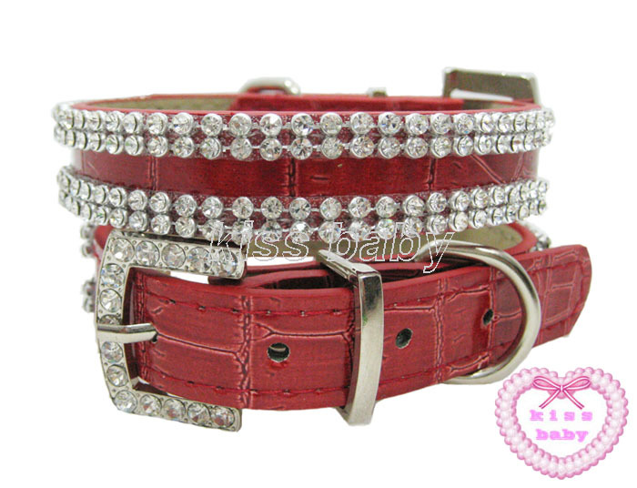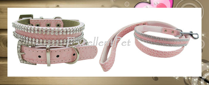 4排水晶钻 粉色鳄鱼纹 宠物牵引项圈 猫狗项圈颈圈 5色