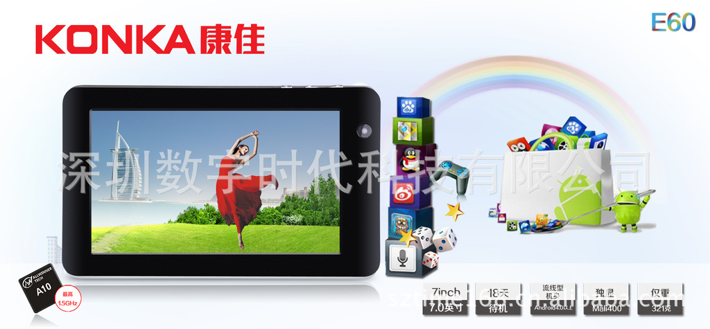 KONKA康佳E60,7寸平板电脑,DDR3,最高1.5G主频,安卓4.0,品牌
