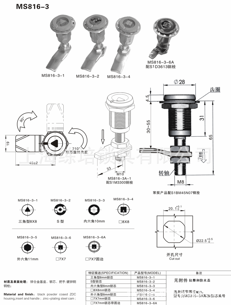 MS816-3压缩收紧柜锁,能压缩密封条,锁紧力好,优质锁,实用!