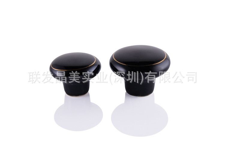晶美衣柜橱柜抽屉田园高档优质陶瓷单孔拉手黑色金圈CE001