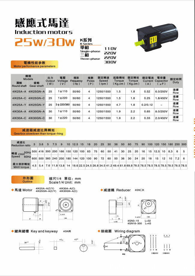 欧邦OPG 感应式马达4IK25RGN-C 4GN60K