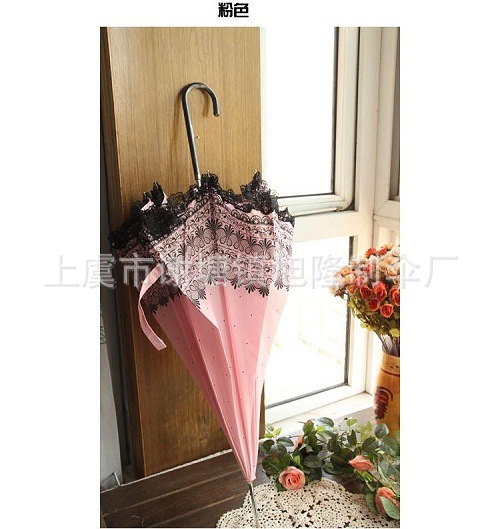 直杆花边,防紫外线,不锈钢伞架,女士遮阳伞。