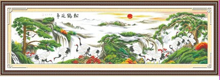 精准印布十字绣套件 精度100 山水风景新款 迎客松仙鹤版(二Y