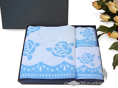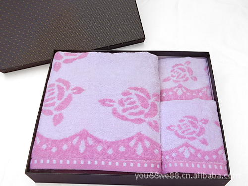 畅销玫瑰花色织毛巾套装 造型美观实用 深圳京竺沅家纺送礼佳品
