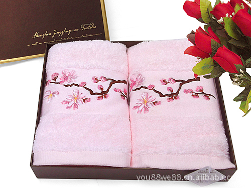 畅销傲骨梅香毛巾两件套 素色毛巾套装 夜夜香高档礼盒毛巾